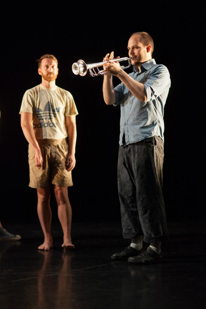 I perform on stage as part of dance and theatre pieces, playing trumpet, piano, guitar, bass or live electronics. Here are a selection of pieces I have performed in.